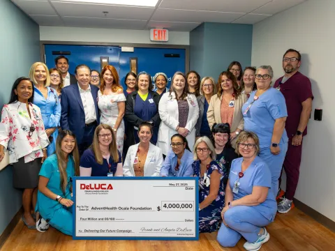 DeLuca Legacy Foundation Check Presentation: Our Delivering Our Future campaign at AdventHealth Ocala has received a $4,000,000 gift for women’s and children's services thanks to visionary donors Frank and Angela DeLuca.
